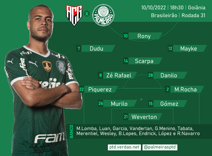 Palmeiras: Weverton; Marcos Rocha, Gómez, Murilo e Piquerez; Danilo, Zé Rafael e Scarpa; Mayke, Dudu e Rony