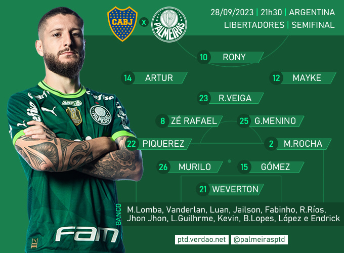 Palmeiras: Weverton; Marcos Rocha, Gómez, Murilo e Piquerez; Zé Rafael, Gabriel Menino e Raphael Veiga; Mayke, Artur e Rony