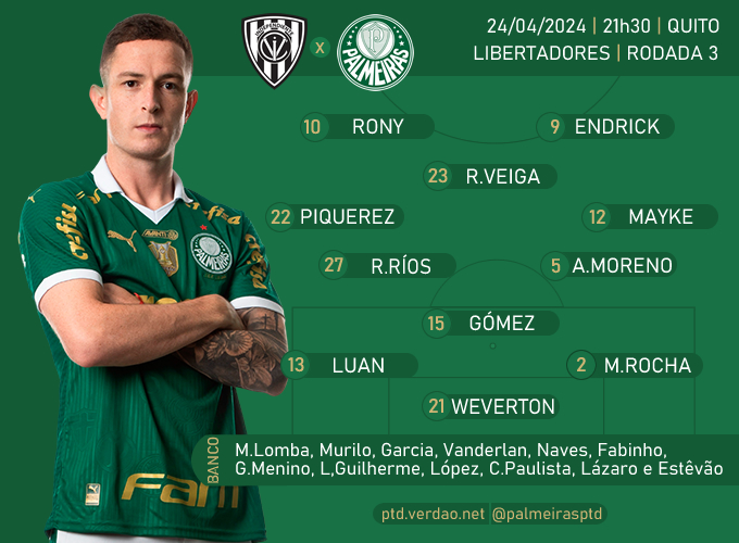 Palmeiras: Weverton; Marcos Rocha, Gustavo Gómez e Luan; Mayke, Aníbal Moreno, Richard Ríos, Raphael Veiga e Piquerez; Rony e Endrick