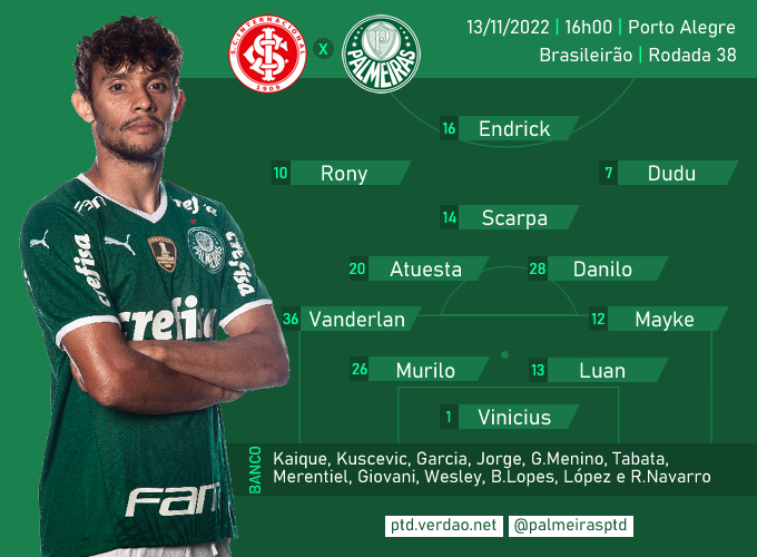 Palmeiras: Vinicius; Mayke, Luan, Murilo e Vanderlan; Atuesta, Danilo e Scarpa; Dudu, Rony e Endrick
