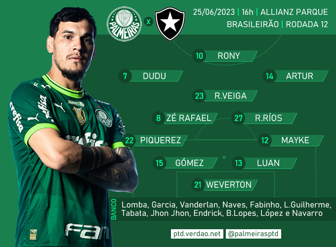 Palmeiras: Weverton; Mayke, Gómez, Luan e Piquerez; Zé Rafael, Richard Ríos e Raphael Veiga; Artur, Dudu e Rony