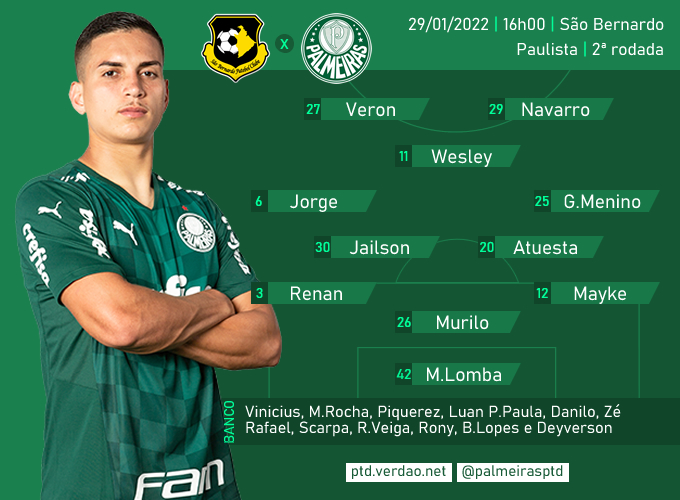 Palmeiras: Marcelo Lomba; Mayke, Murilo, Renan e Jorge; Jailson, G.Menino e Atuesta; Wesley, Veron e Rafael Navarro
