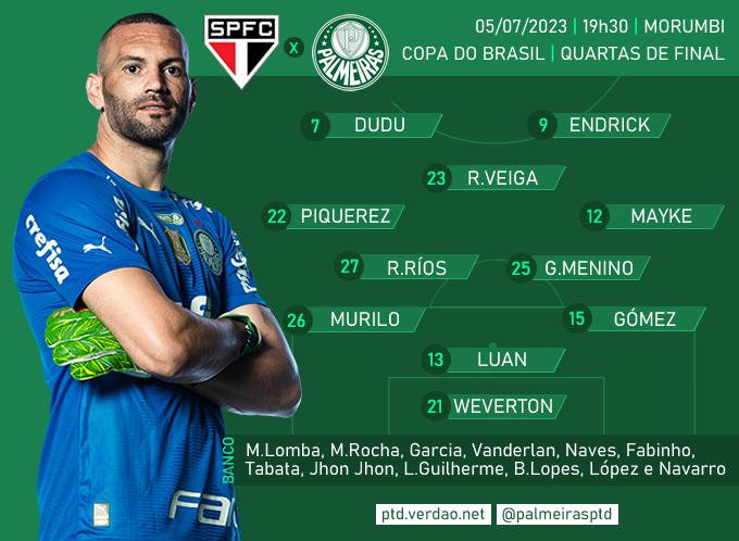 Palmeiras: Weverton; Mayke, Gómez, Murilo e Piquerez; Luan, Gabriel Menino, Richard Ríos e Raphael Veiga; Dudu Endrick