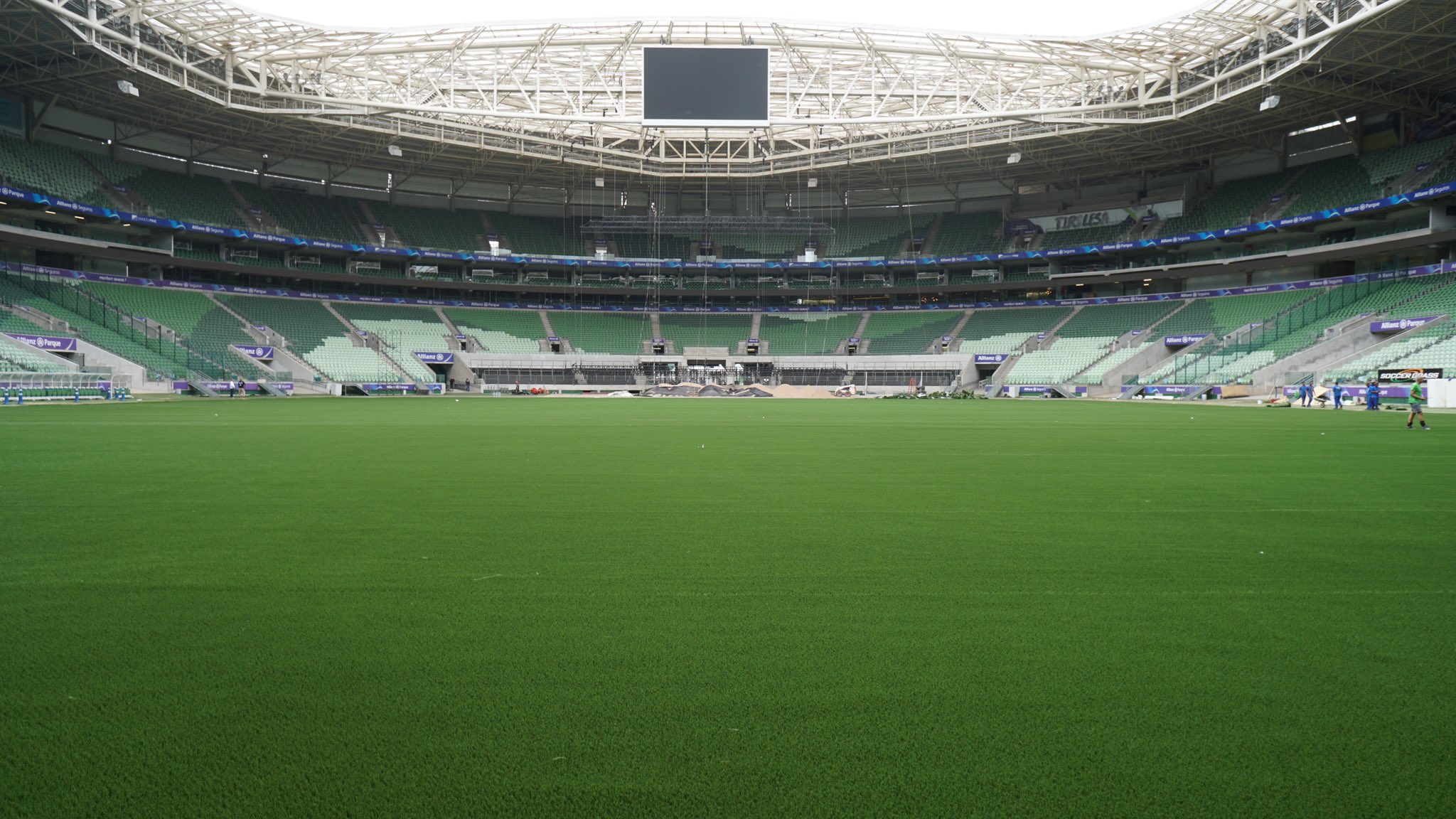 No final da tarde de sexta-feira o perfil do Allianz Parque no Twitter divulgou novas imagens do gramado sintético, que está em fase final de instalação.